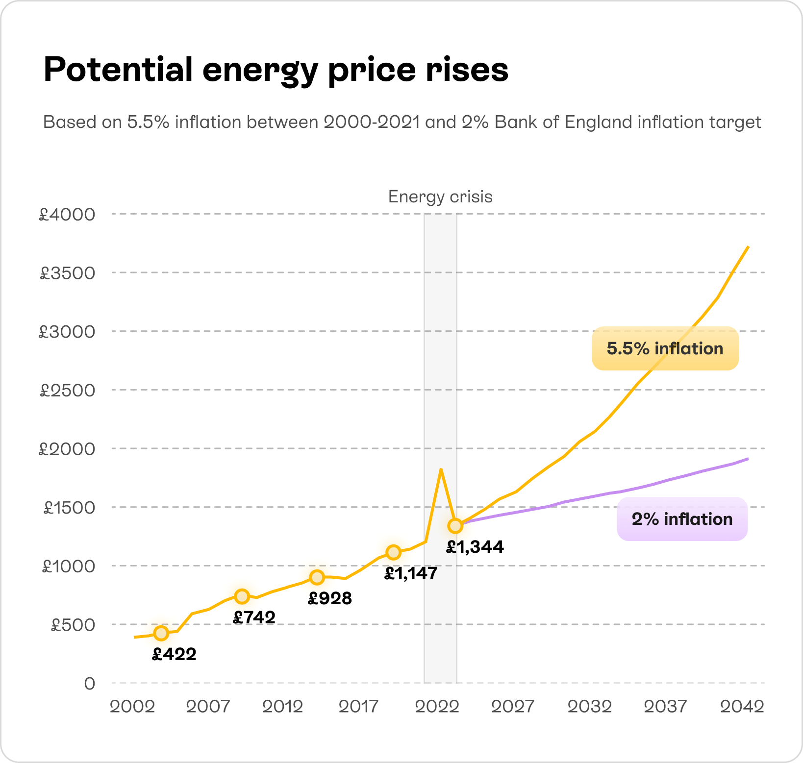 With Sunsave Plus, your monthly payments are fixed, so you’re protected against inflation from rising energy bills, and your savings should increase over time.